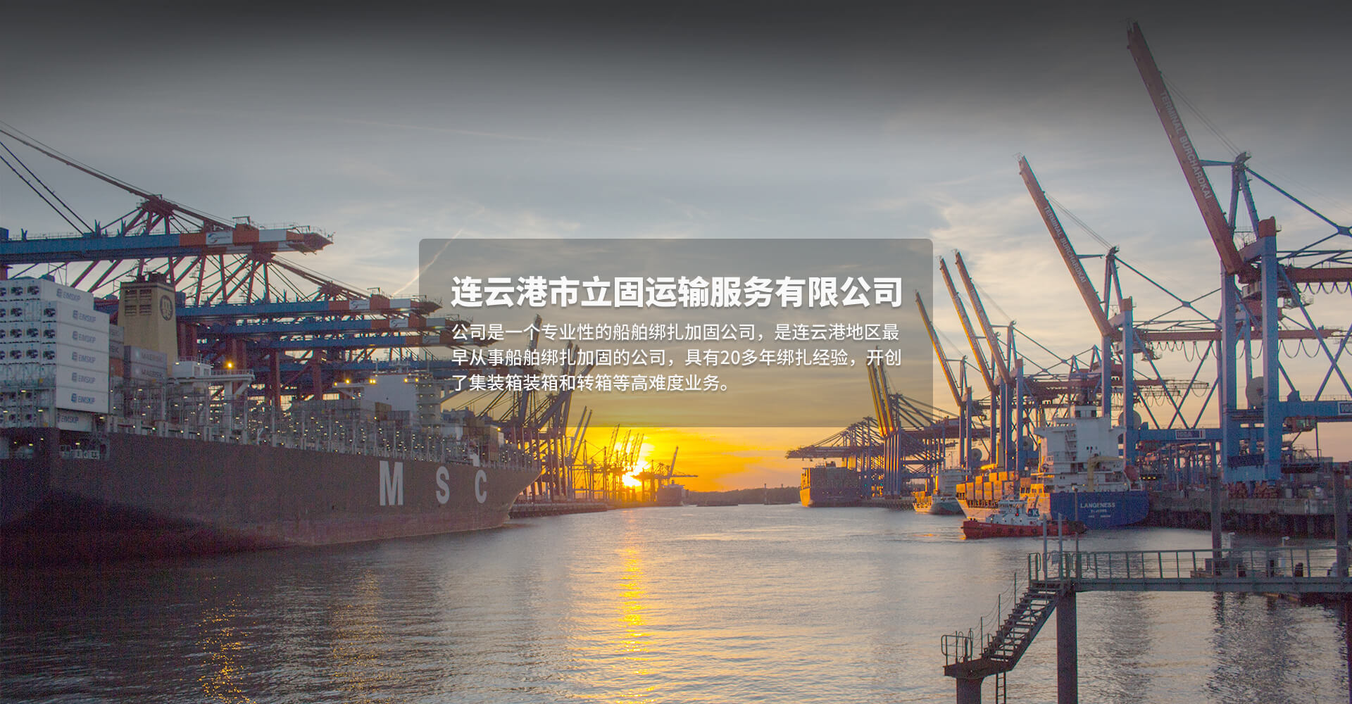 專業性的船舶綁扎加固公司,是連云港地區最早從事船舶綁扎加固的公司,具有20多年綁扎經驗